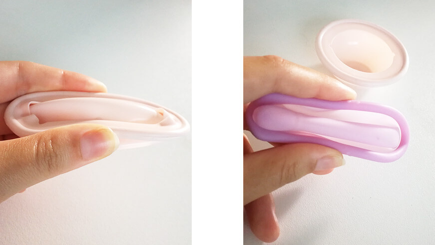 Bon, déjà, la forme n’est pas la même du tout. Le Milex est plutôt rond alors que le diaphragme à taille unique est plus allongé. Mais le plus significatif, de mon avis, est la malléabilité des produits. Alors que mon Milex était plutôt rigide et dur à plier, mon nouveau diaphragme est beaucoup plus souple dû à sa composition en silicone. Ça ne se voit pas forcément sur les photos, mais j’ai dû davantage forcer pour plier le Milex alors que pour le diaphragme à taille unique c’était facile ! De par sa souplesse, il est vraiment plus facile à insérer.